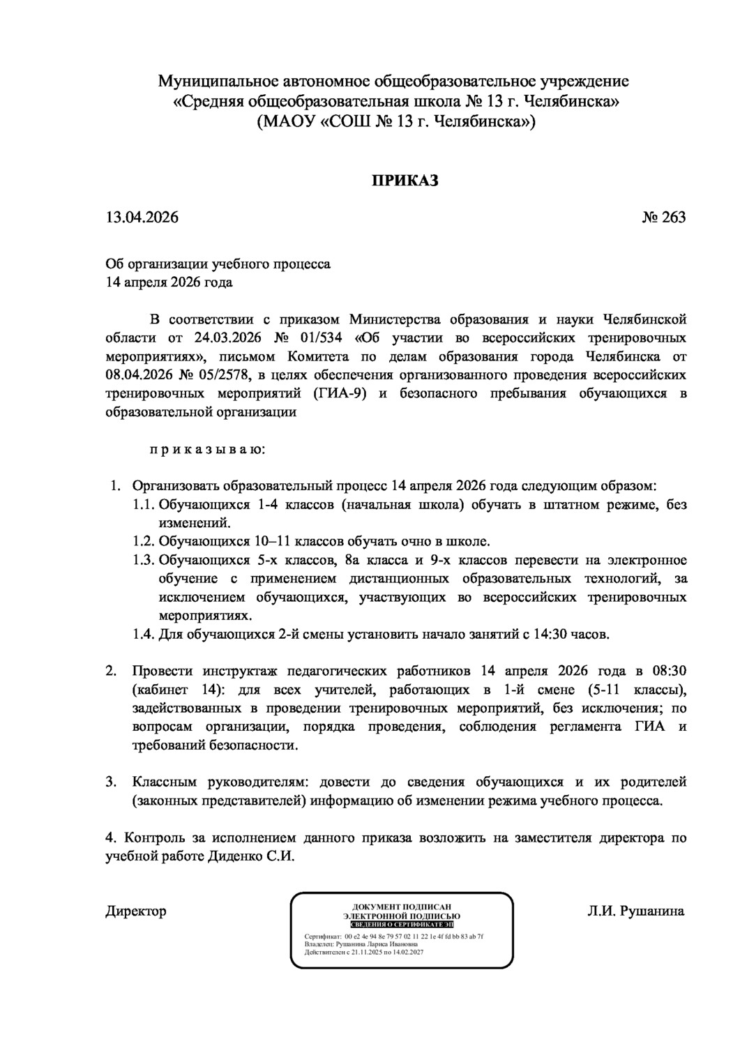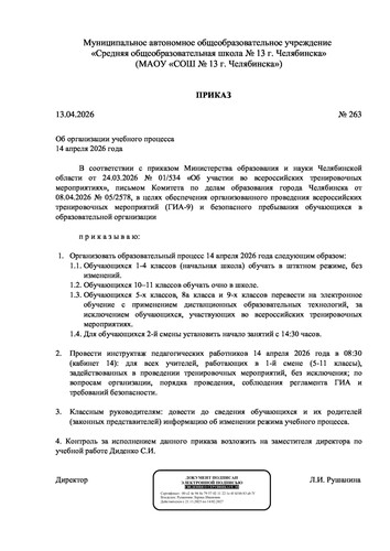 "Средняя общеобразовательная школа № 13 г. Челябинска"